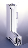 - stahlverstärktes, wärmedämmendes Kunststoff-Mehrkammer-System in flächenversetzter Bauweise.